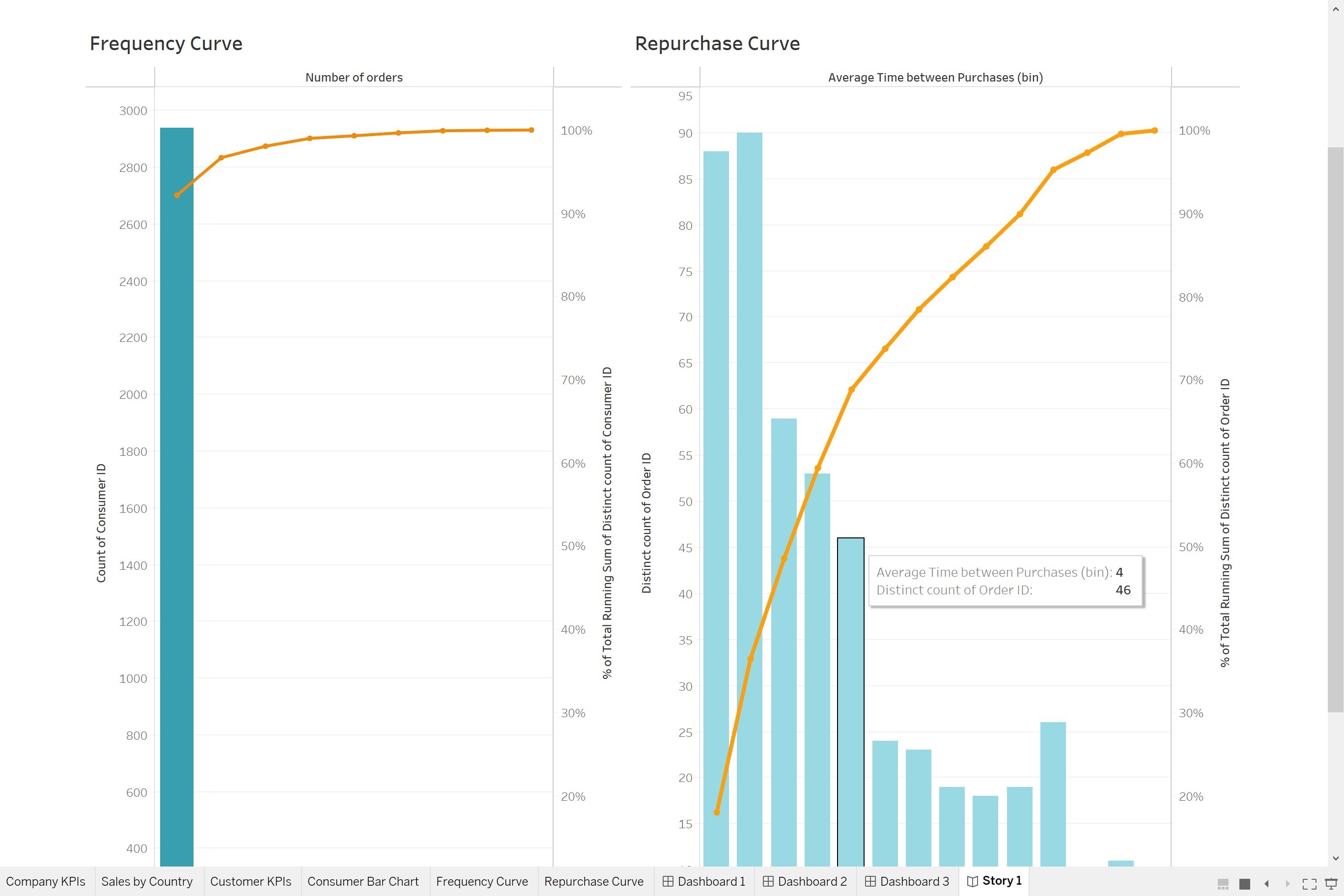 | 4 | Frequency of Consumer | to track how the items are served on the way to complete every purchase and to know the average time of customer to repurchase. | Frequency Curve, Repurchase Frequency Curve |